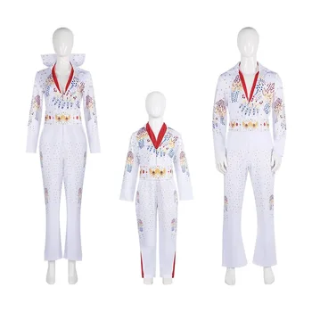 Movie Presley Cosplay Costume Diamond Rock Singer Cosplay Adult Children White Printed Jumpsuit Suits Halloween Costume